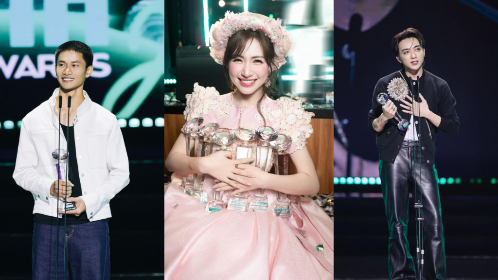 Nguyễn Hùngは「最優秀新人賞」において69.2%という驚異的な得票率を記録しただけでなく、映画『Đàn cá gỗ』の主題歌『Phép màu』で「最も人気のある映画のサウンドトラック曲賞」を、そして『Còn gì đẹp hơn』で「社会現象となった曲賞」を受賞し、計5つのトロフィーを手にした。彼の活躍は、Hòa Minzyの全部門制覇を阻止するほどの影響力を持っており、まさに2025年のV-POP界における「魔法」のような存在となった。